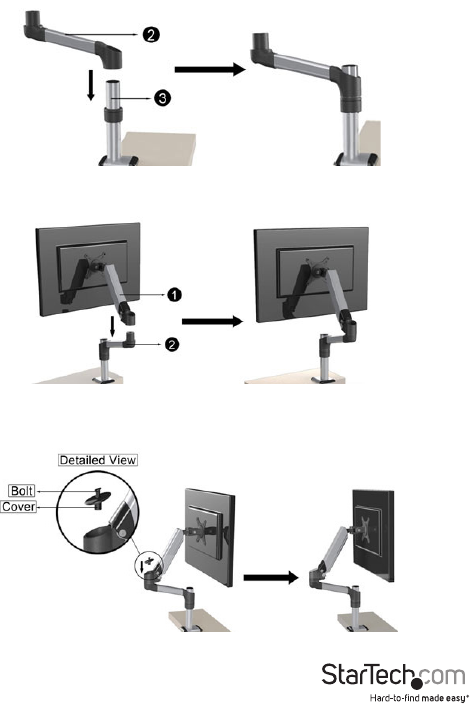 1. Slide the Extension Arm (2) down onto the Pole (3).