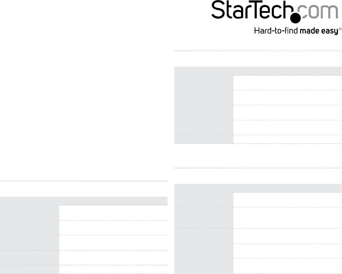 StarTech.com. Where they occur these references are for illustrative purposes only and do not represent an endorsement of a product or service by StarTech.com, or an endorsement of the product(s)